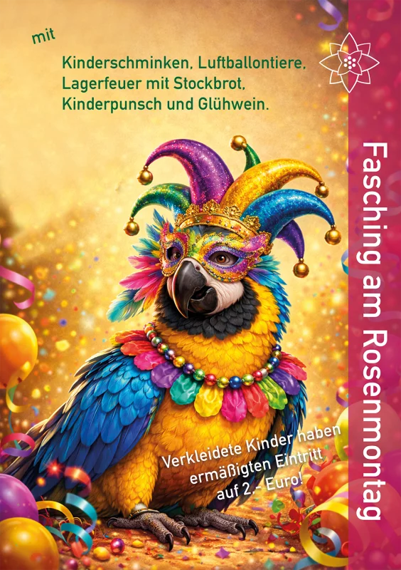 Helau und Alaaf! Bei uns wird es bunt, fröhlich und richtig närrisch. Schnapp dir dein schönstes Kostüm und komm vorbei – wir feiern gemeinsam Fasching im Zoo!
